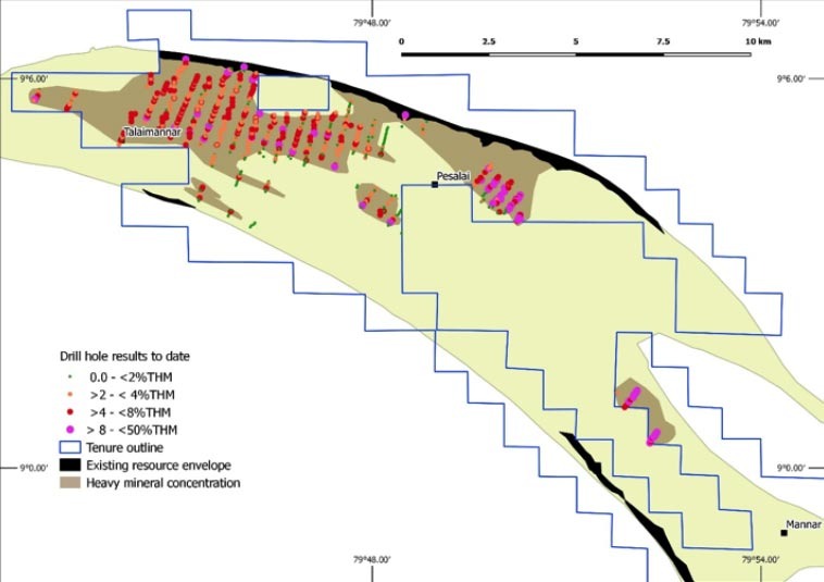 இலங்கையின் மன்னார் தீவில் டைட்டானியம் சாண்ட்ஸ் லிமிடெட் நிறுவனம், உள்ளூர் பங்காளர்களான ஓரியன் மினரல்ஸ் (பிரைவேட்) லிமிடெட், சனூர் மினரல்ஸ் (பிரைவேட்) லிமிடெட் மற்றும் கில்சித் இன்வெஸ்ட்மென்ட்ஸ் (பிரைவேட்) லிமிடெட் ஆகியவற்றுடன் இணைந்து, ஓர் உயர்தர, மதிப்புமிக்க மற்றும் எளிதில் பிரித்தெடுக்கக்கூடிய கனரகக் கனிம மணல் (Heavy Mineral Sands) திட்டத்தை உருவாக்கி வருகிறது. இந்தத் திட்டத்தின் சமீபத்திய நோக்க ஆய்வு (Scoping Study) அறிக்கையானது, இது ஒரு குறிப்பிடத்தக்க கனிம மணல் சொத்து என்பதை உறுதிப்படுத்தியுள்ளதுடன், இதன் மொத்த இருப்பை 5.02% தரத்தில் (Grade) 345 மில்லியன் டன்கள் என மதிப்பிட்டுள்ளது. மேலும், இந்தத் திட்டத்தின் தற்போதைய மொத்த நிகர மதிப்பு (Net Present Value – NPV) $545 மில்லியன் டொலர்களாகக் கணக்கிடப்பட்டுள்ளது.