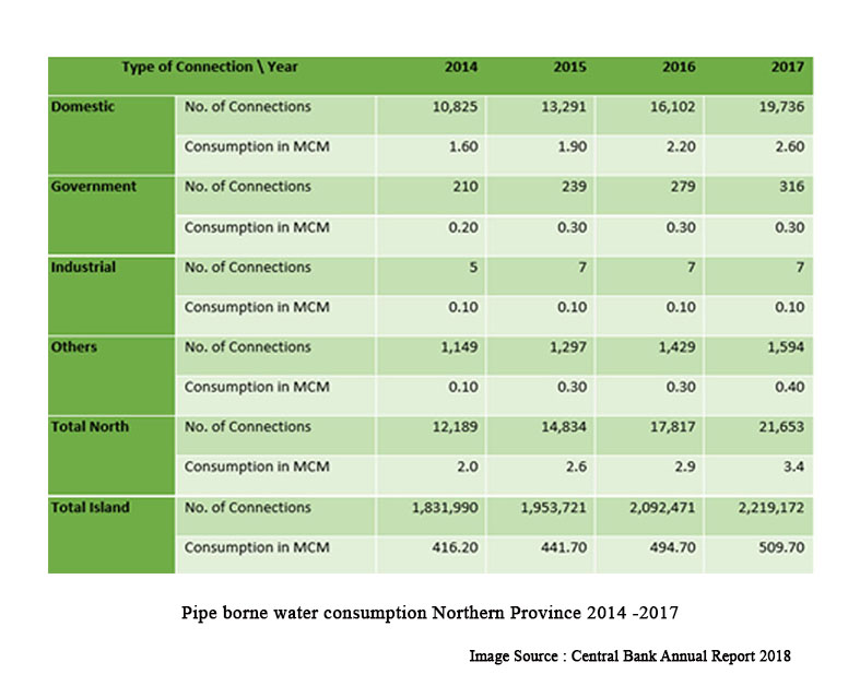 புதிய நீர் இணைப்புகளுக்கான அதிகரித்த தேவையைச் சந்திக்கவும், பாதுகாப்பான மற்றும் மலிவு விலை குடிநீருக்கு சமமான அணுகலை உறுதி செய்யவும், தேசிய நீர் வழங்கல் மற்றும் வடிகால் வாரியம் (NWS & DB) தனது சேவைகளைத் தொடர்ந்து விரிவுபடுத்தியது. 2018 ஆம் ஆண்டில், பாதுகாப்பான குடிநீருக்கான மக்களின் அணுகல் மட்டத்தை அதிகரிக்கும் போது, ‘NWS & DB’ பல நீர் வழங்கல் வளர்ச்சித் திட்டங்களைச் செயற்படுத்தியது. பாதுகாப்பான குடிநீருக்கான அணுகல் குறிப்பிடத்தக்க அளவில் அதிகரித்துள்ளது; குழாய் நீருக்கான அணுகலும் கணிசமாக உயர்ந்துள்ளது.