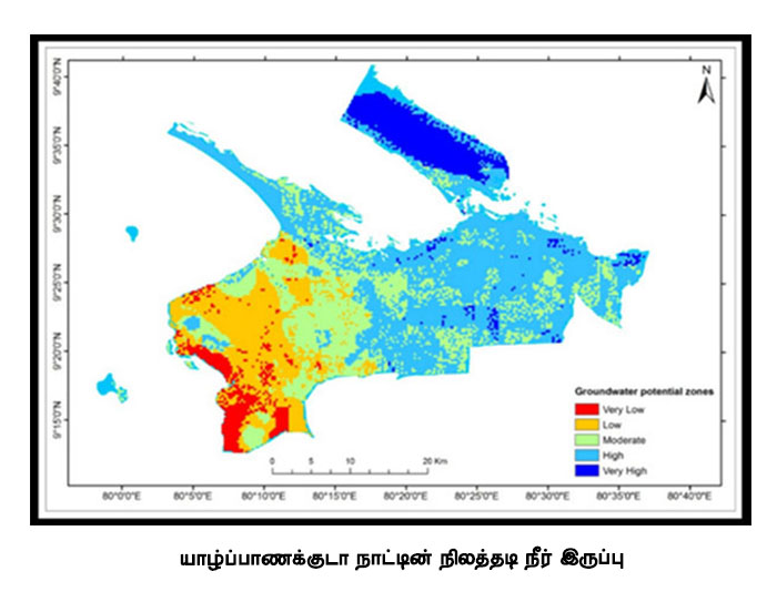 யாழ்ப்பாணக் குடா நாட்டின் நீர் வளங்களுக்கான ஒரே ஆதாரம் ஆழமற்ற நிலத்தடிநீர் ஆகும். இது வீடு, வணிக நிறுவனங்கள், பழங்களும் காய்கறிகளும் உற்பத்தி செய்யும் தொழிற்சாலைகள் மற்றும் பண்ணைகள் உட்பட அனைத்தாலும் பயன்படுத்தப்படுகிறது. முழுக் குடாநாட்டிலும் ஆறுகள் போன்ற மேற்பரப்பு நீர்வளங்கள் எதுவும் இல்லை. மதிப்பீட்டின்படி, வடகிழக்குப் பருவமழையில் 10 முதல் 15 சதவீதம் நீர் நிலத்தடிக்குள் ஊடுருவுகிறது.