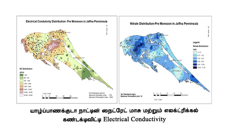 1980 ஆம் ஆண்டில், நீர்வளச் சபையானது (Water Resources Board) சோதனை செய்த வேளாண் நிலங்களில் உள்ள 50% கிணறுகளில் நைட்ரேட்டு அளவு 50 mg/l இற்கு மேல் இருப்பதைக் கண்டறிந்தது. அதே நேரத்தில் யாழ்ப்பாண மாநகராட்சிக்காகப் பயன்படுத்தப்பட்ட கிணறுகளின் நீரும் சோதிக்கப்பட்டன. கோண்டவில் கிணற்றில் 149 mg/l NO3 செறிவும், திருநெல்வேலிக் கிணற்றில் 141 mg/l NO3 செறிவும் காணப்பட்டன. இவை 50 mg/l என்ற அனுமதிக்கப்பட்ட வரம்பை வெகுவாக மீறியவை.