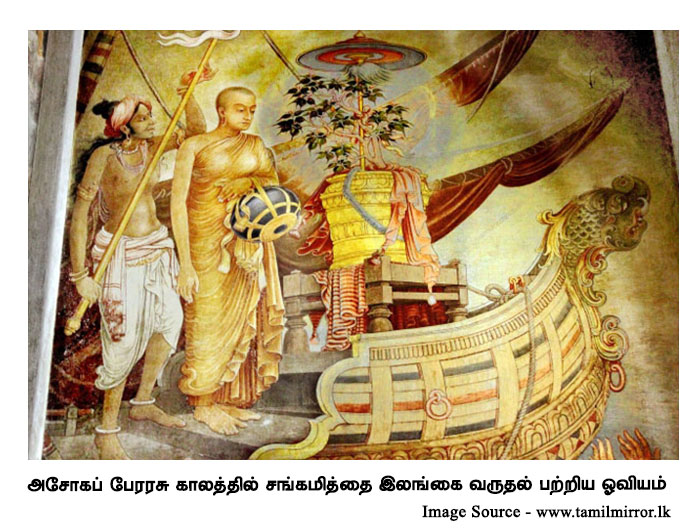 கி.மு. 3 ஆம் நூற்றாண்டில் இலங்கையில் பரவிய அசோகப் பேரரசு தேரவாத (Theravada) மகா சங்கத்தையும் தேரவாத பௌத்த அரசையும் இலங்கையில் ஸ்தாபித்தது. எப்படியோ அசோகப் பேரரசினது பேரரச ஆதிக்கத்திற்கு இலங்கை பணிந்தது. அரசும் மதமும் பேரரச ஆதிக்கத்தில் ஒரு நாணயத்தின் இரு பக்கங்கள் என்று வரலாற்றாளர்கள் கூறுவது சரியானதே.