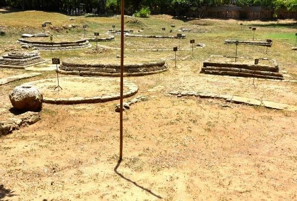 1967 ஆம் ஆண்டு ஜுலை மாதம் முதல் வாரம் வரை 20 ஸ்தூபங்களின் அடித்தளங்கள் காணப்பட்டன. இவற்றில் பெரியது 23 அடி அகலமும் சிறியது 6 அடி அகலமும் கொண்டிருந்தது. இங்கே முக்கியமாகக் கவனிக்க வேண்டியது அகழாய்வில் இந்த ஸ்தூபங்களின் மேல் கட்டுமானம் எதுவும் காணப்படவில்லை.
