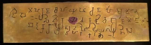 கொழும்பு அருங்காட்சியகத்தில் காட்சிக்கு வைக்கப்பட்டிருக்கும் வல்லிபுரப் பொற்சாசனப் பிரதி. Image Source: National Museum, Colombo.