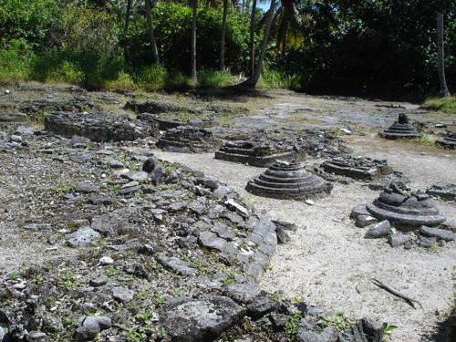 மாலைதீவு காஷிடூ பௌத்தப்பள்ளியிலுள்ள ஸ்தூபங்களின் அடித்தளங்கள் கந்தரோடை போன்று வட்ட வடிவிலும், சதுர வடிவிலும் காணப்படுகின்றன. Image Source: Egil Mikkelsen