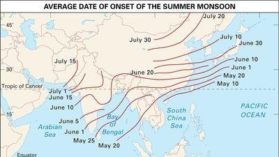 தென்மேற்குப் பருவப் பெயர்ச்சிக் காற்றின் காலத்தைக் காட்டும் படம்.