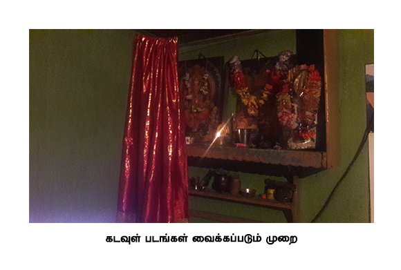 கருவுற்று மூன்றாம் மாதத்தில் கருவுற்ற பெண் மற்றும் கணவன் ஒரே தோட்டத்தைச் சேர்ந்தவர்களாக இருந்தால் பெண்வீட்டார் வந்து பெண்ணைத் தன் வீட்டுக்கு அழைத்துச் செல்வர். மூன்றாம் மாதத்தில்தான் அழைத்துச் செல்வார்கள் என்று சொல்லமுடியாது. அது அவர்களின் விருப்பத்தைப் பொறுத்து மாறும். இவ்வாறு அழைத்துச் செல்லும் போது அங்கு வழியில் இருக்கும் அம்மன் கோவில் மற்றும் காவல் தெய்வமான மாடசாமி கோவில்களுக்குத் (இது தோட்டங்களுக்கு ஏற்றாற் போல் மாறும்) தேங்காய் உடைத்துக் கற்பூரம் காட்டுவார்கள். தேங்காய் உடைக்கும் போது கர்ப்பிணிப் பெண் பக்கத்தில் இருக்கக்கூடாது. உடைத்து முடித்தபின் அழைத்து வந்து அனைவரும் சேர்ந்து வணங்கிவிட்டு வீட்டுக்கு அழைத்துச் செல்வார்கள். துஷ்டசக்திகள் பெண்ணை வரும் வழியில் அணுகியிருந்தால் அதனைப் போக்குவதற்காக இச்சடங்குமுறை செய்யப்படுகின்றது. ஒரு பெண் வேறு தோட்டத்திற்கு திருமணம் முடித்துச் சென்றிருந்தால், அவர் தேயிலைத் தோட்டத்தில் வேலை செய்பவராக இருக்கும்பட்சத்தில், அவருக்கு விடுமுறை பெறுவது இயலாத விடயம் ஆகும்.