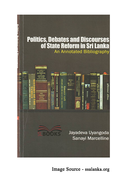 ‘Politics, Debates and Discourses of State Reform in Sri Lanka: an Annotated Bibliography’ என்னும் தலைப்பில் நூற்பட்டியல் ஆய்வு நூல் ஒன்றை இலங்கைச் சமூக விஞ்ஞானிகள் சங்கம் 2013 ஆம் ஆண்டு வெளியிட்டது. இந்த ஆங்கில நூலின் தலைப்பில் குறிப்பிடப்பட்டதற்கு அமைய ‘State Reform in Sri Lanka’ (இலங்கையின் அரசுக்கட்டமைப்பு மாற்றம்) என்ற விடயம் தொடர்பாக 1960கள் முதல் 2013 வரையான காலப்பகுதியில் எழுதப்பட்ட முக்கியமான ஆய்வுக் கட்டுரைகள், எழுதிப் பிரசுரிக்கப்பட்ட முக்கியமான நூல்கள் ஆகியவற்றின் நூல் பட்டியல் ஆய்வாக மேற்படி நூல் விளங்குகிறது. இந்நூலை அரசியல் விஞ்ஞானப் பேராசிரியர் ஜயதேவ உயன்கொடவும், ஆய்வாளரான சனஜி மார்சலின் (Sanayi Marcelline) அவர்களும் இணைந்து எழுதியுள்ளனர். இந்நூலை அறிமுகம் செய்வதே இக்கட்டுரையின் நோக்கமாகும்.