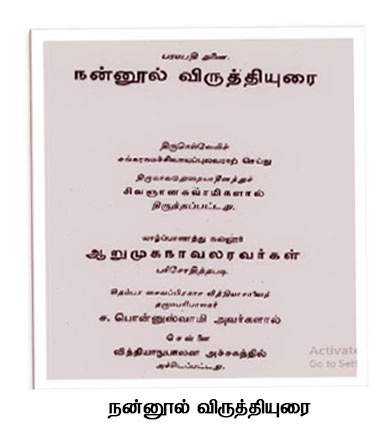 - முதன் முதலில் ஆறுமுகநாவலர் தான் நன்னூல் விருத்தியுரைப் பதிப்பினை, 1851 இல் வெளிக்கொணர்ந்தார்.